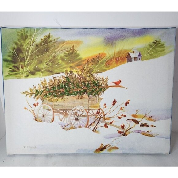VTG Country Snow Fall Cardinal Canvas Embroidery Work Signed Framed Wall Art