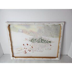 Vtg Country Snow Fall Cardinal Canvas Embroidery Work Signed Framed Wall Art