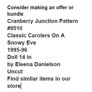 Cranberry Junction Pattern #9510 Classic Carolers On A Snowy Eve 1995-96 Doll by Eleena Danielson Uncut Complete Factory Fold