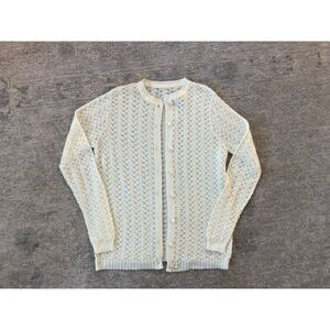 Vtg Cream Eyelet Knit Crew Cardigan