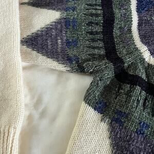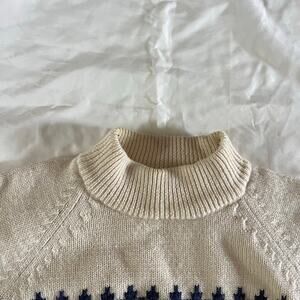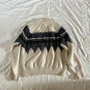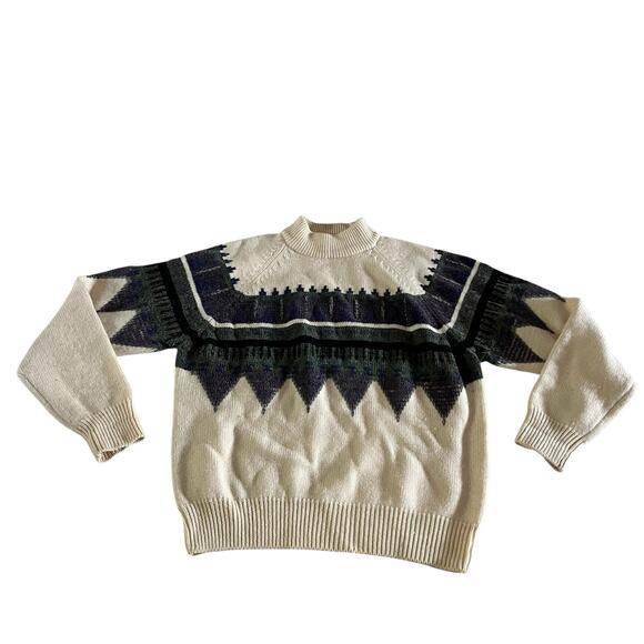Vtg Cream Retro Nordic Print Wool Eclectic Grandpa Pullover Sweater Men's L