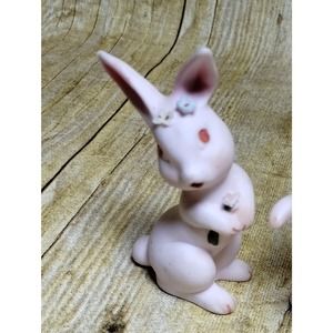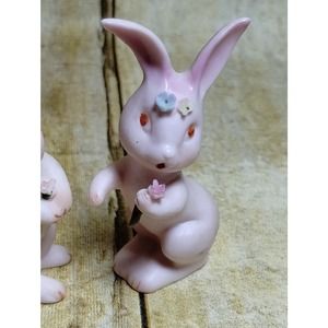 Vtg Creepy Pink Bunny Rabbit Salt Pepper Shaker Anthropromorphic Flowers Red Eyes