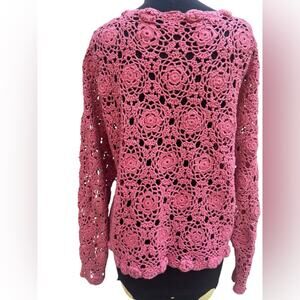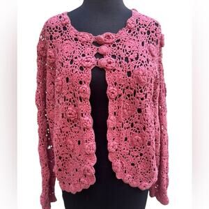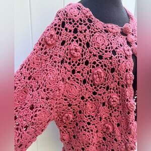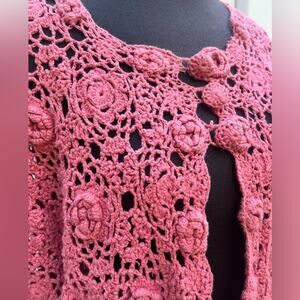 Vtg Crochet 3D Flower Boho Cottagecore Coquette Cardigan Size M Romantic