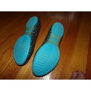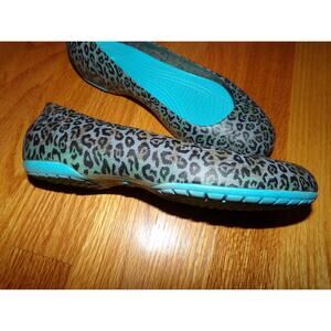 Vtg Crocs gray/teal leopard ballet flats size 7 Excellent No tears Boho Retro