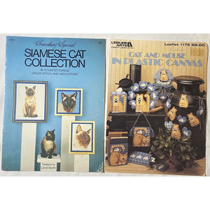 Lot of 2 Vintage Leisure Arts Charted Cross Stitch Pattern Siamese Cats & Cat and Mouse