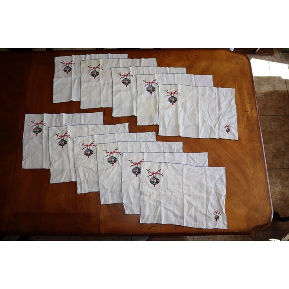 At least 2 or 3 have some discoloration and slight staining. Allover wear and piling. They look to be handstitched with cross stitch.
