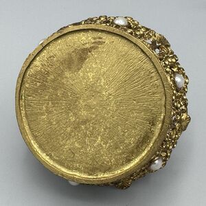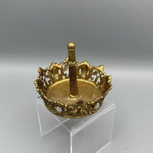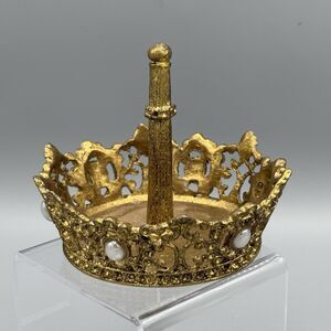 Vtg Crown Shaped Ring Jewelry Holder Trinket Dish Gold Tone Bead Accents Vanity