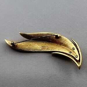 Vtg Crown Trifari Figural Brooch Pin White Enamel Gold Tone Modernist 1960s