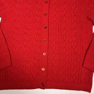 Vtg Cuddle Knit Cardigan Sweater Women Red Cable Knit Acrylic USA 70s Sz M ?!