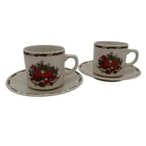 Vtg Cups and Saucers in O Christmas Tree by Ten Strawberry Street Set/4 (8 pcs)