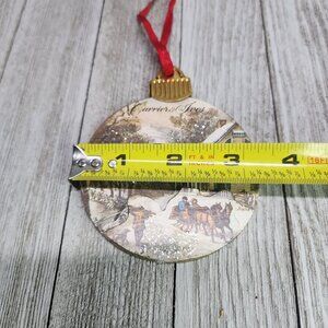 Vtg Currier & Ives Winter Christmas Hanging Ornament Holiday Decor 3 1/4" DIA