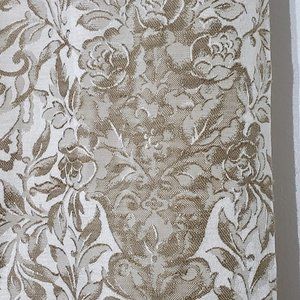 SOLD Vtg Curtain Panels Tan Damask Floral 76x83