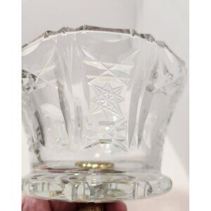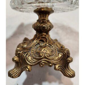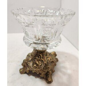 Vtg Cut Crystal Glass Compote w Brass Footed Base Elegant Hollywood Regency