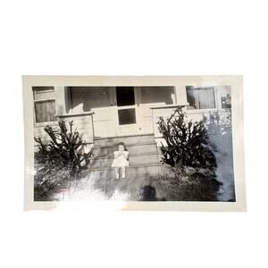 Vtg Cute Young Girl Toddler Posing on Steps Monochrome Photography Found