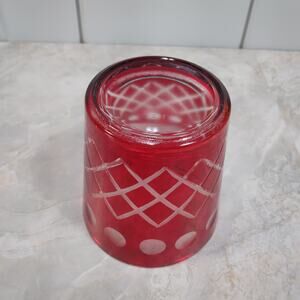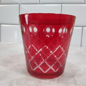 Vtg Czech Style Ruby Red Diamond Cut Glass 3" Bar Cocktail Tumbler Rocks Glass