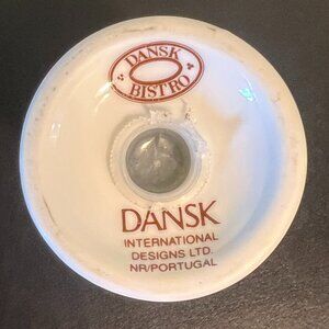 Add a clean Scandinavian look to your tabletop with this classic and contemporary Christianshavn Blue pattern salt and pepper shaker set by Dansk Bistro. Features an understated and elegant design in white and accented with blue bands. Microwave and dishwasher safe. Measures 4” tall with a 2” diameter. From Dansk Bistro; Dansk International Designs LTD. NR/Portugal. Only one shaker has the original plastic plug on the underside.