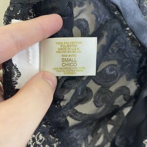 Vtg DELICATES Women's Black Floral Lace Teddy Romper Lingerie Tie Back Sz S.