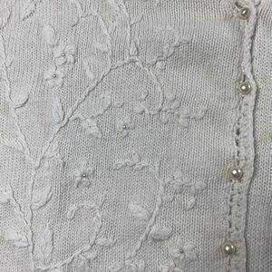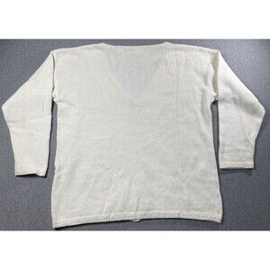 Vtg Dana Scott Floral Embroidered Beaded Knit Cardigan Womens Large Off-white