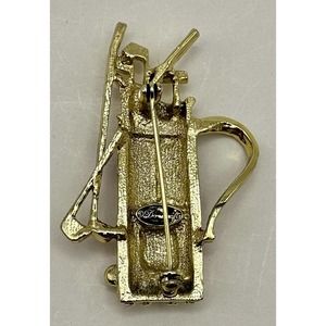 Vtg Dane Craft Golf Bag Clubs Brooch Pin Enamel Gold Tone Rhinestone Pearl 2.5"