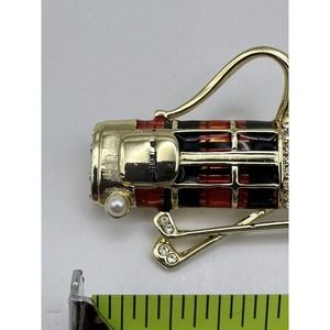 Vtg Dane Craft Goljf Bag Clubs Brooch Pin Enamel Gold Tone Rhinestone Pearl 2.5".