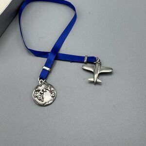 Vtg Danforth Vermont Pewter Bookmark Blue Ribbon Plane Globe Box Travel Reading