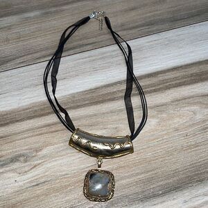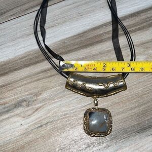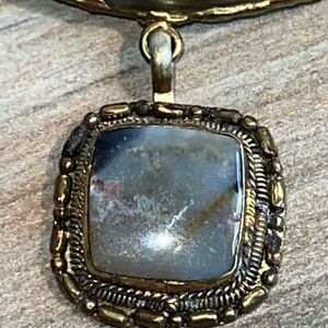 Vtg Dangle Charm Slide Pendant Necklace Bail Jasper Mixed Metal India 80s