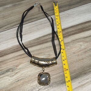 Vtg Dangle Charm Slide Pendant Necklace Bail Jasper Mixed Metal India 80s