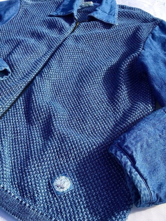Vtg Danish Blue Willi’s Zip Natural Cotton Knit Sweater Denim Jacket Women’s XL