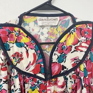 Vtg David Brown California Floral Maxi Long Sleeve House Coat Dress Women's XS