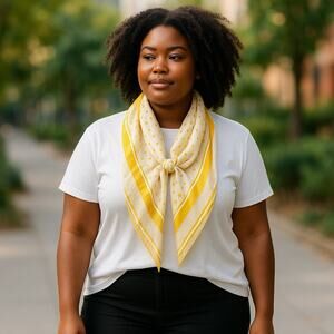 Vtg. David Hayes Scarf Wrap Silky Yellow White Polka Dot Oversized 35in Signed
