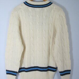 Vtg Davison's Bermuda Large Ivory Navy Blue Wool Cable Knit V Neck Sweater Golf