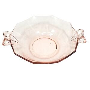 Vintage Decagon Pink Depression Glass 7" Candy Trinket Dish Handles Decor.