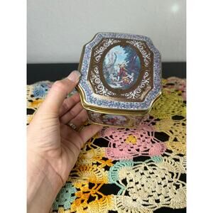 Vtg Decorative Tin with lid- Meister- Victorian Cherubs- regal intricate golden