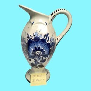 Vtg Delft Blue 9” Pitcher Made in Holland Blue White Floral Hand Painted H.6.16A