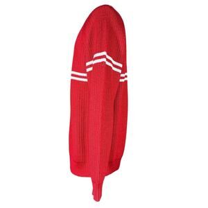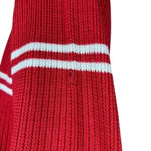 Vintage Demetre Red Wool Blend Ski Sweater White Stripes Crest Patch Chunky Ribbed