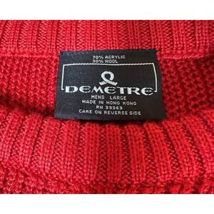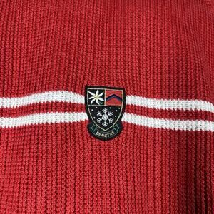 Vtg Demetre Red Wool Blend Ski Sweater White Stripes Crest Patch Chunky Ribbed L