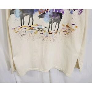 Vtg Denali Alaska Foundation Hand Painted Caribou Long Sleeve Henley Shirt Large. Good Pre-owned condition with no rips or tears. NOTE there are a few small spots mostly on the sleeve. No spot treatment attached. See photos for details of condition