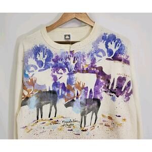 Vtg Denali Alaska Foundation Hand Painted Caribou Long Sleeve Henley Shirt Large