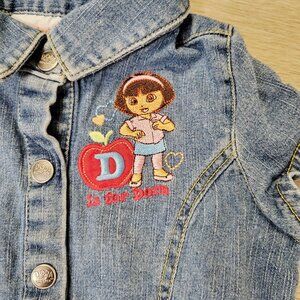 Vtg Denim Dress Embroidered D is for DORA The Explorer Sz 6 Y2K Nick Jr. READ