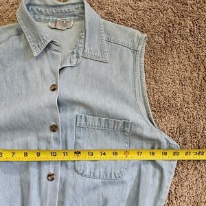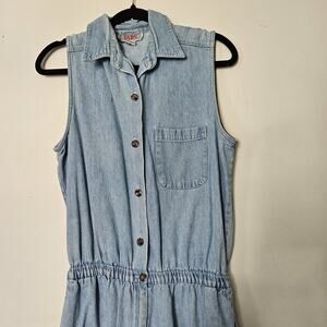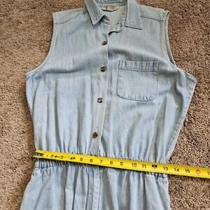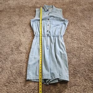 Vtg Denim Romper Womens L Blue Jean Shorts Jorts Button Up Collared Y2K Boho