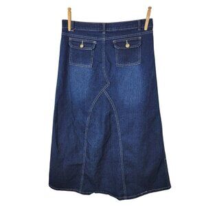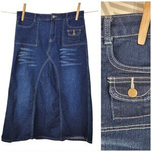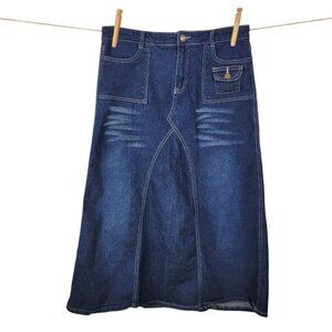Vtg Denim Skirt Junior 16 (12/14) 32" Waist Jean Modest Long Midi Zip Pocket Alt