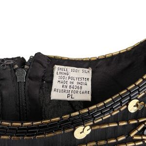 Vtg Denise Elle Womens Silk Cocktail Dress PL Black Gold Beaded Sequin New Years