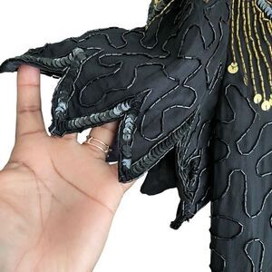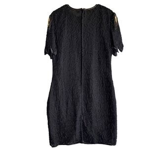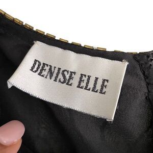 Vtg Denise Elle Womens Silk Cocktail Dress PL Black Gold Beaded Sequins 90s