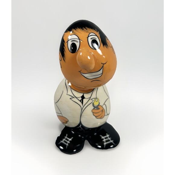 Check out this weirdo! This is a vintage dentist figurine made from rocks/stones. This dentist has just done an extraction and it proudly holding a tooth. Hand made and hand painted, this fellow stands approximately 5 inches tall and 3 inches wide. Signed by the artist on the bottom Raul Y Elo and dated 88".