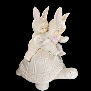 Vtg Dept 56 Snowbunnies Riding Turtle 1995 It's Working We're Going Faster