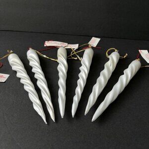 Vtg Deptartment 56 Handblown Glass Icicle Ornaments Set Of 6 White Christmas new