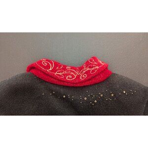 Bring holiday cheer with this festive cardigan featuring a nativity scene. It's perfect for those who want to wear their holiday spirit and look like a walking Christmas card. The vibrant embroidery and glitzy collar and wrist trim are sure to make you the star of any holiday gathering.