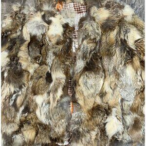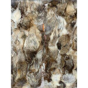 Vtg Designer Rabbit Fur Jacket Womens M Brown Cream Florence Carter Lined READ