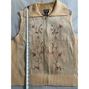 Vtg. Designer's Studio Originals Leather and Embroidered Vest SZ XL Y2K/ 90s