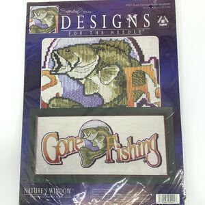 Vtg Designs for the Needle Natures Window Gone Fishing Counted Cross Stitch Kit